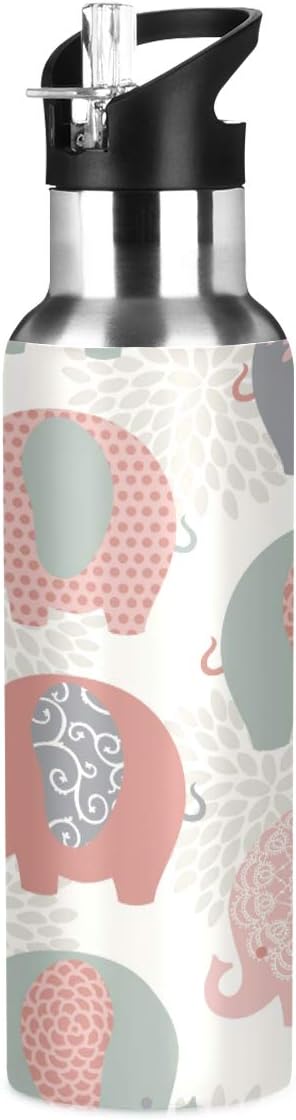 Cute Colorful Elephants Stainless Steel Water Bottle with Straw, BPA Free Reusable Leakproof Water Jug for Fitness Camping Outdoor Sports
