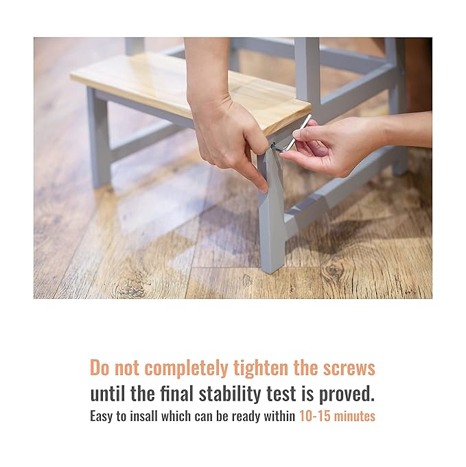 • MUTI-FUNCTIONS: Toddler kitchen stool can elevate your baby to counter height, teach them cooking skills to get a little helper shortly. Make your kitchen full of fun! Also, you could put it in the washing room so kids can brush their teeth by themselves..