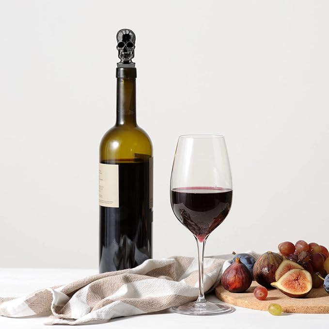 Homestia Wine Bottle Stoppers for Glass Bottles, Skull Bottle Stopper Reusable Wine Corks Black Wine Tool, Zinc-Alloy Silicone Wine Stoppers, Wine Toppers with Decors