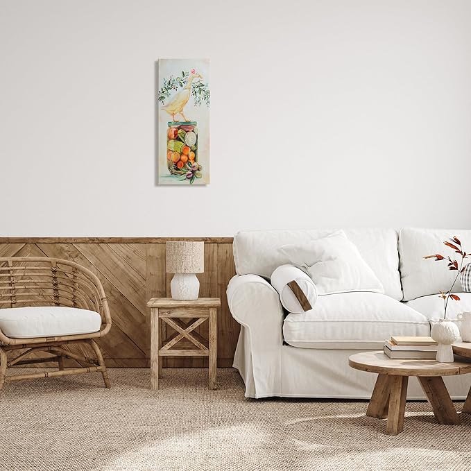 Stupell Industries Female Goose on Vegetable Jar Charming Kitchen, Design by Karen Weber Fine Canvas Wall Art, 13x30, Beige