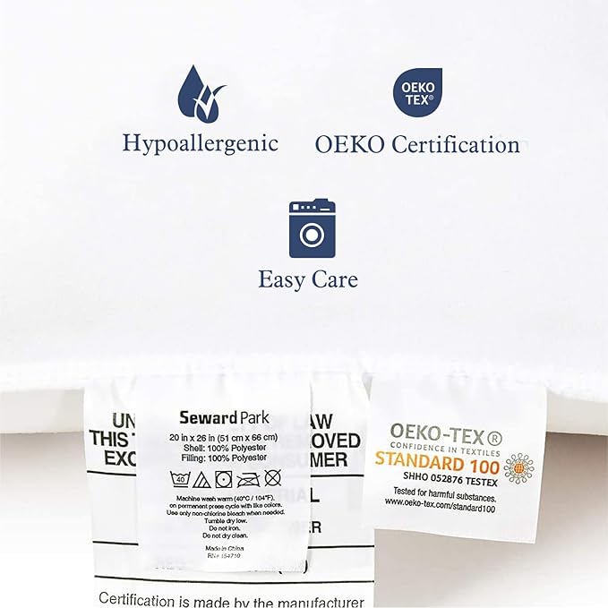 - ALLERGIC FREE β Certificated by OEKO-TEX, the pillow cover and microfiber stuffing are made breathable and hypoallergenic to ensure comfortable, healthy sleep.
