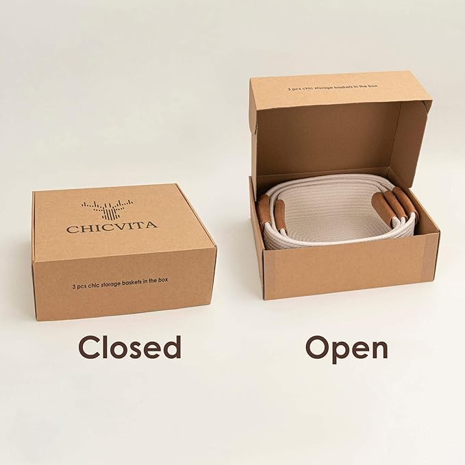 CHICVITA 3 Pack Rectangle Cotton Rope Woven Basket with Handles for Books, Magazines, Toys - Ideal Gift Decorative Basket for Baby Nursery, Living Room