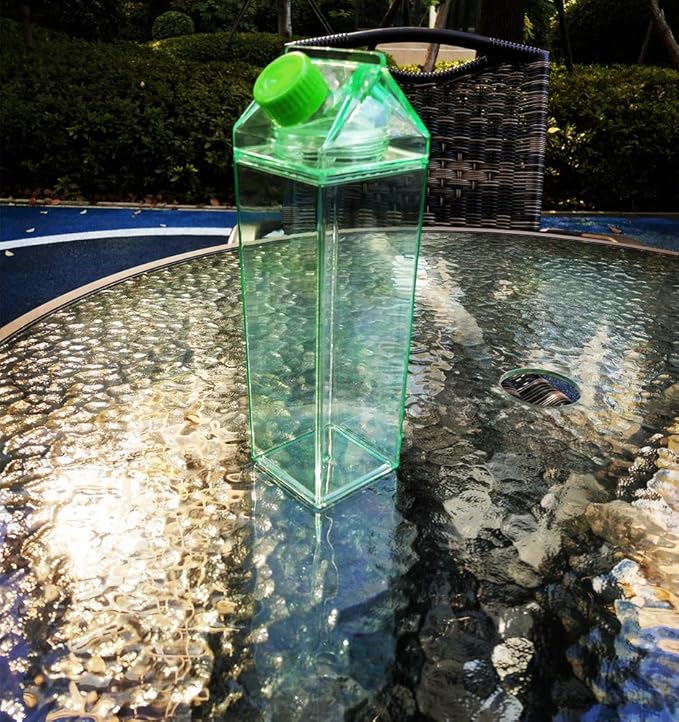 - 【TRENDY & CUTE】: This clear milk carton water bottle features a minimalist look. It allows you to put any stickers you like to make it into a customized bottle. Choose this water bottle and make drinking water a pleasure.