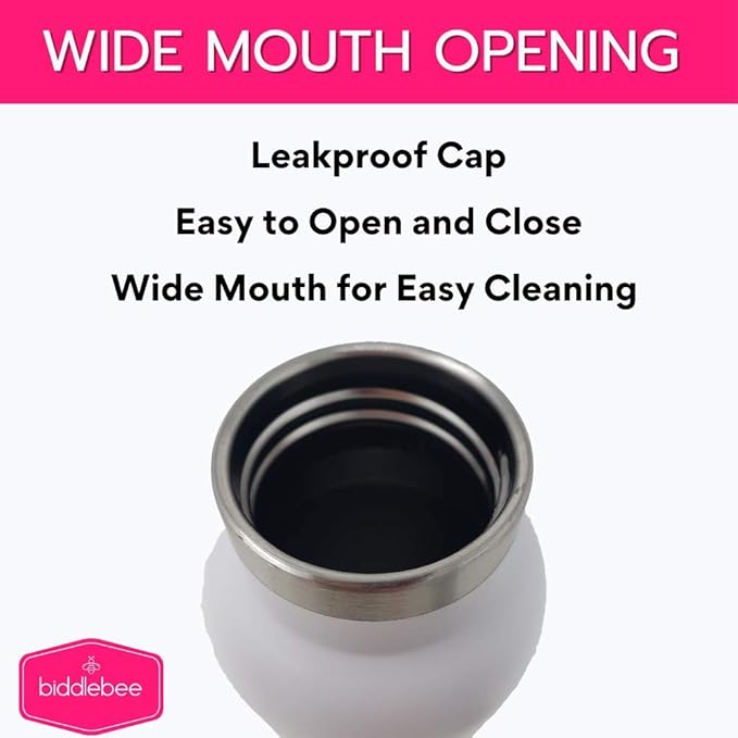 - Perfect Anywhere: The stainless steel flask style bottle will help you and your family stay hydrated. This bottle features a wide mouth opening for easy cleaning a drinking and a leak-proof easy twist off lid. The integrated handle makes this bottle convenient to carry to work, school, the gym or use at home. This reusable bottle is great for girls, boys, teens, and adults.