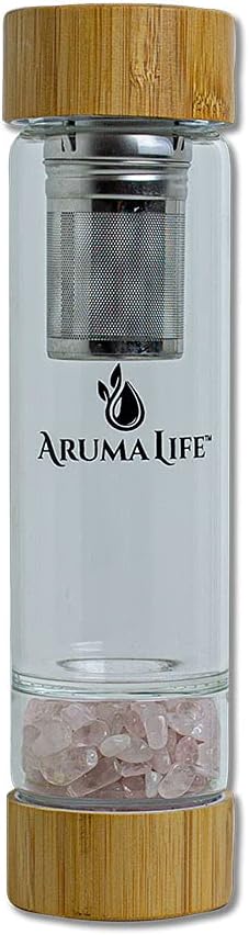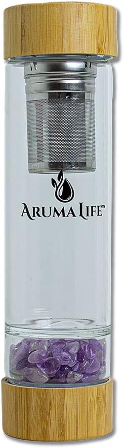 Crystal Water Bottle with a Loose-Leaf Tea/Fruit Infuser, Safe for Hot and Cold Drinks, Eco-friendly & Plus BONUS Protective Sleeve & Extra Set of Crystals Amethyst & Rose Quartz