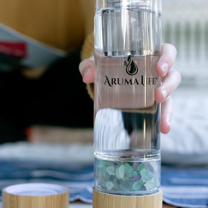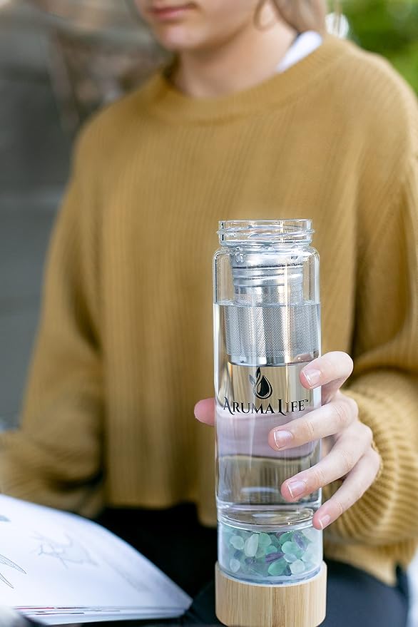- THE PERFECT GIFT: Looking for that perfect gift? Give the gift of healing and positive energy with the Aruma Life Crystal Water Bottle & Diffuser. Our Crystal Water Bottles come beautifully gift boxed and include a removable tea or fruit infuser, a protective sleeve and a bonus set of crystals so you can tailor your crystal elixir to suit your mood or occasion.