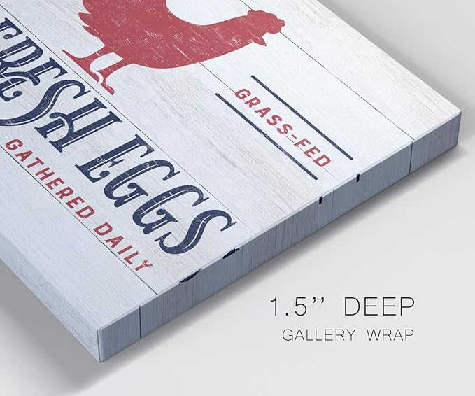 Renditions Gallery Canvas Animal Wall Art Home Paintings & Prints Organic Farm Fresh Eggs Abstract Red & White Modern Chicken Artwork Decorations for Bedroom Office Kitchen - 24"x36" LT33