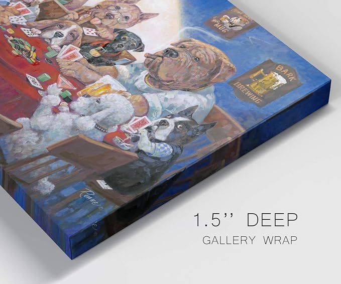 Renditions Gallery Canvas Animal Wall Art Home Paintings & Prints Poker Playing Doggos Abstract Family Festival Modern Artwork Decorations for Bedroom Office Kitchen - 12"x18" LT33
