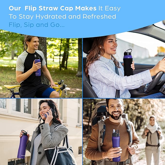 - COLD LIQUIDS ONLY When Using the flip cap with straws! This is a wide mouth double wall insulated water bottle is made of 18/8 food grade stainless steel water bottle, which is only recommended for use with cold beverages due to the flip spout and straw drinking mechanism. You can use for hot liquids with the additional extra new cap made just for our waterbottle.