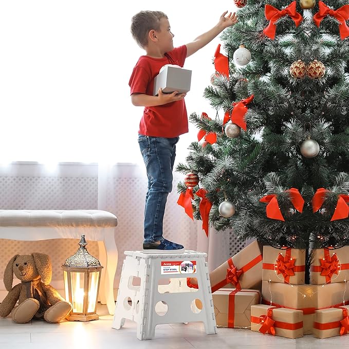 ACSTEP 13 inch Height Premium Heavy Duty Foldable Stool for Adults, Kitchen Garden Bathroom Stepping Stool White