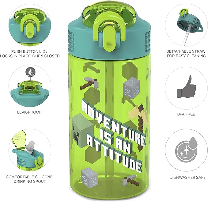 - LIFESTYLE: Staying hydrated is an important part of being healthy! Featuring iconic graphics, Zak Designs' innovative Minecraft water bottles helps make it easy for grown-ups and fun for kids!