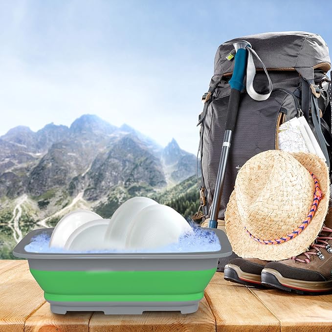 - MULTI-PURPOSE BIN – This collapsible bin is perfect for indoor or outdoor use. It can be used as a wash basin for dishes or hands, ice bucket for drinks, storage container for your items for camping, hiking, boating, picnicking or tailgating, and more!