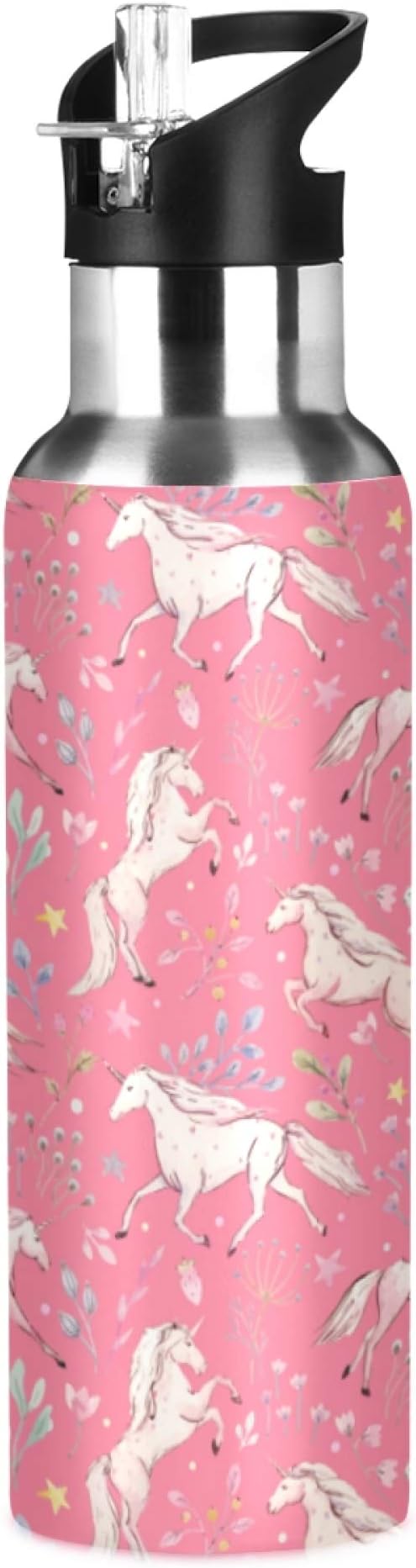 MNSRUU Insulated Water Bottle with Straw, Rainbow and Unicorns Stainless Steel Flasks for Sports Cycling Hiking School