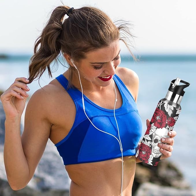 - LEAK PROOF LID: The flasks water bottles has a leak-proof design, so you don’t have to worry about water spilling when the bottle is tilted. The lid with handle and is more portable