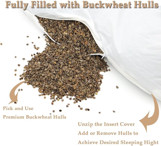 - Buckwheat Hull Filling: The neck support pillow is filled with premium buckwheat hulls, which breathability and conform to your body's shape; firm pillow relieving pressure and discomfort, and providing all-round support and comfort;