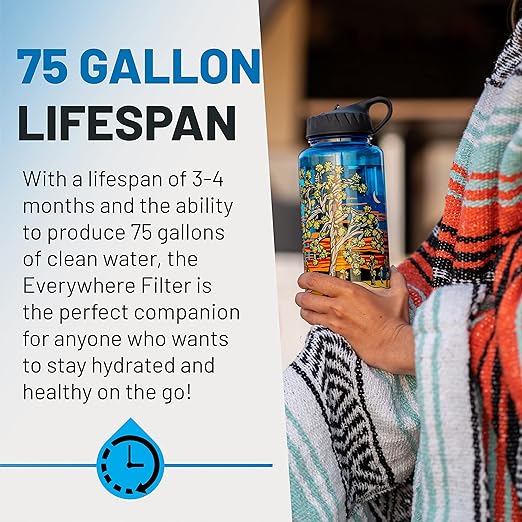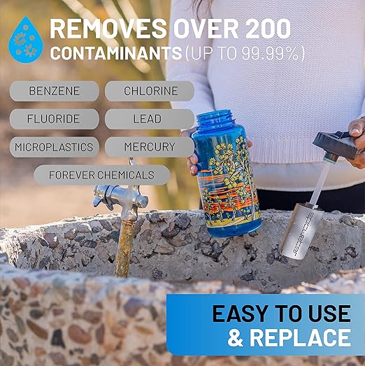 - FILTERED WATER BOTTLE (LEAD WATER FILTER): This Nalgene water bottle with filter uses depth & adsorption filtration to be the perfect water purifier. Adsorption removes particulates via the activated coconut carbon fiber mesh surface areas, which adsorbs contaminants such as cysts, heavy metals, chemicals & pharmaceuticals. Depth filtration (6mm thick) involves the removal of suspended waste products as they try to pass through the millions of layers of coconut carbon fiber block.