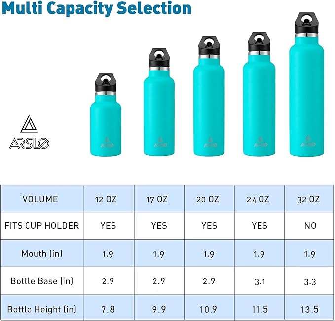 - MULTIPLE SIZE AND COLORS: Goodbye sweat ! Vacuum insulation with copper plating lining provide a better insulation condensartion. Vacuum stainless steel water bottle has multiple size (12 oz, 17 oz, 20 oz, 25 oz, 32 oz ) to meet your request with more than 10 colors. The anti-slip carbon coating surface ensucs a good grip and protect metal flask bottle from paint loss and any scratches. 12 oz, 17 oz, 20 oz, size fit in most coaster