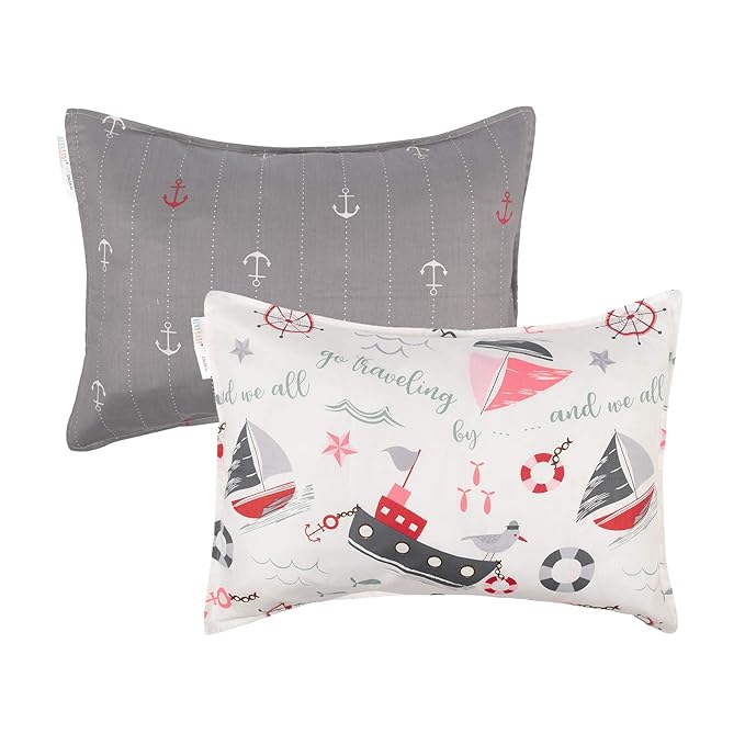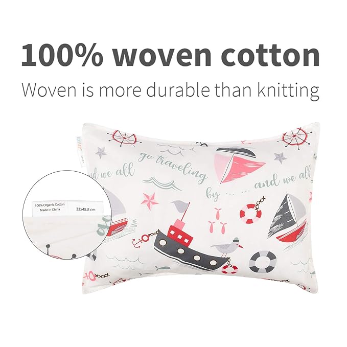 ALVABABY Travel Pillow Cover, Fits 13 x 18,12x 16 Kids Pillow, 2 Pack Organic Cotton Toddler Pillowcase, Envelope Baby Pillow Cover for Boys Girls, Sailboat+Anchor, 2TPW17