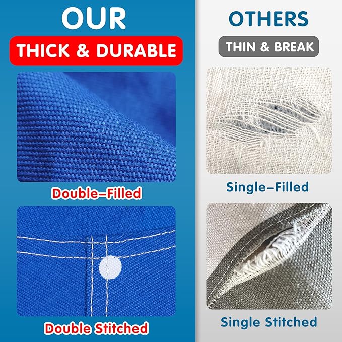 - Natural cotton canvas with double-filled plain weave that the tightly woven structure of it provides excellent resistance to wear and tear. The double stitching is durable. It has more structure than a regular flimsy bean bag. So this stuffed animal storage bean bag chair cover will hold up great with your kids, withstand them playing with it