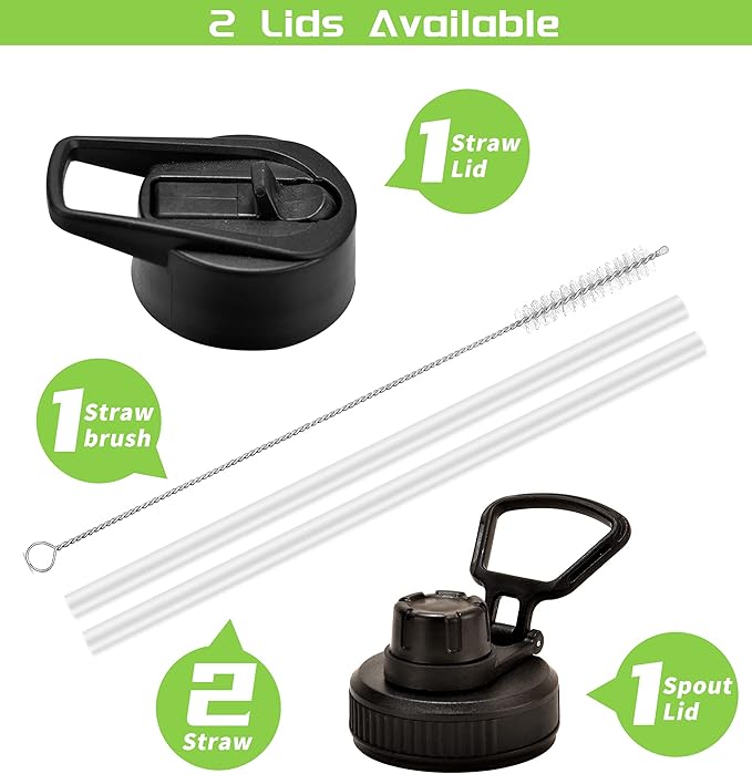 - 【2 Lid Availabl】It comes with 2 compatible and leakproof lids to fit your every need. One spout lid with screw cap allows for fast water flow when you're feeling the burn. Another straw lid allows you to enjoy spill-proof sipping without efforts. They allow easy one-handed or hands-free drinking even when you're busy. Perfect for any indoor and outdoor activities.