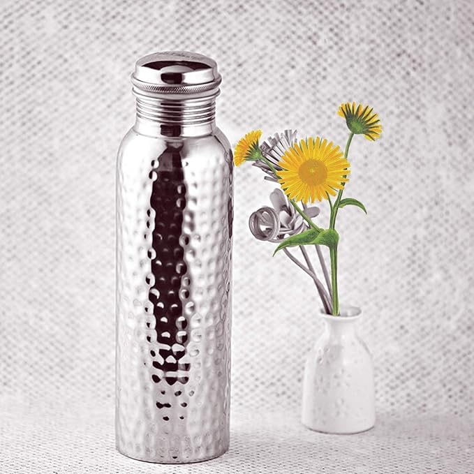 CopperKing Hammered Infused Ayurvedic Pure Copper Water Bottle for Drinking 34oz - 1 Liter | Best Use for Gym, Office, School - Collage, Yoga, Sports Mens and Women