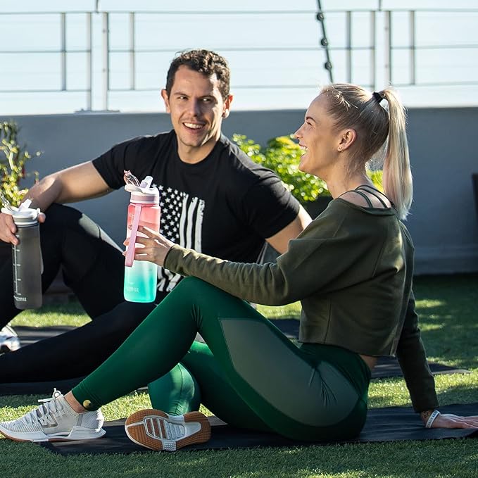 - STAY MOTIVATED & HYDRATED: Our motivational water bottle has different motivators and time marker. Water bottle with straw reminds you to drink more water and helps you keep track throughout the day of your water intake. Use perfectly for weight loss, during and after a workout, fitness and exercise, replenish moisture, overall health