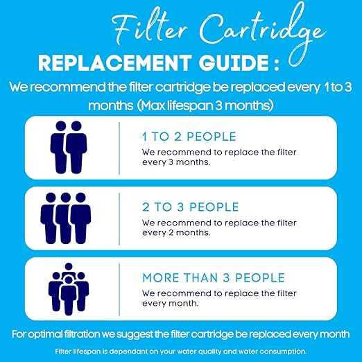 - AFFORDABLE: The replacement filter cartridges last up to 3 months, providing a solution for clean and great-tasting water. Regular filter replacement ensures optimal performance for families and individuals.