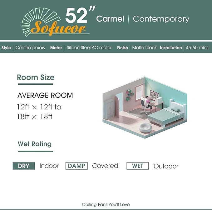 - All-round Customer Support: This indoor outdoor ceiling fan includes clear installation instructions and video tutorial, please install the ceiling fan with our user guide. We promise 3 year customer support to you guys, please contact us if you have any problem with the led ceiling fan.
