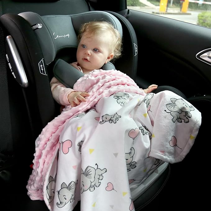 - Super Soft & Soothing: Reversible baby girl blanket is made from 100% quality polyester, to provide coziness and warmth for your little one in all seasons and climates. Double-layer baby blankets for girls feature printed side that is super soft fabric friendly to the delicate skin of babies, and back side that is micro fleece fabric with raised dots to comfort the baby into a good night's sleep.