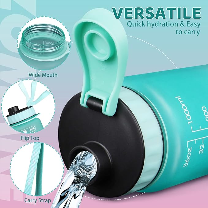 - MOTIVATIONAL QUOTE & TIME MARKER: With motivational words, time marker and ounces & ml measurement on it, our water bottle will boost you to drink more water and measure your daily intake of water clearly. The bottle for drinking water with hydrating reminders is also perfect for any any indoor or outdoor use, including fitness sports, running, hiking, gym workout