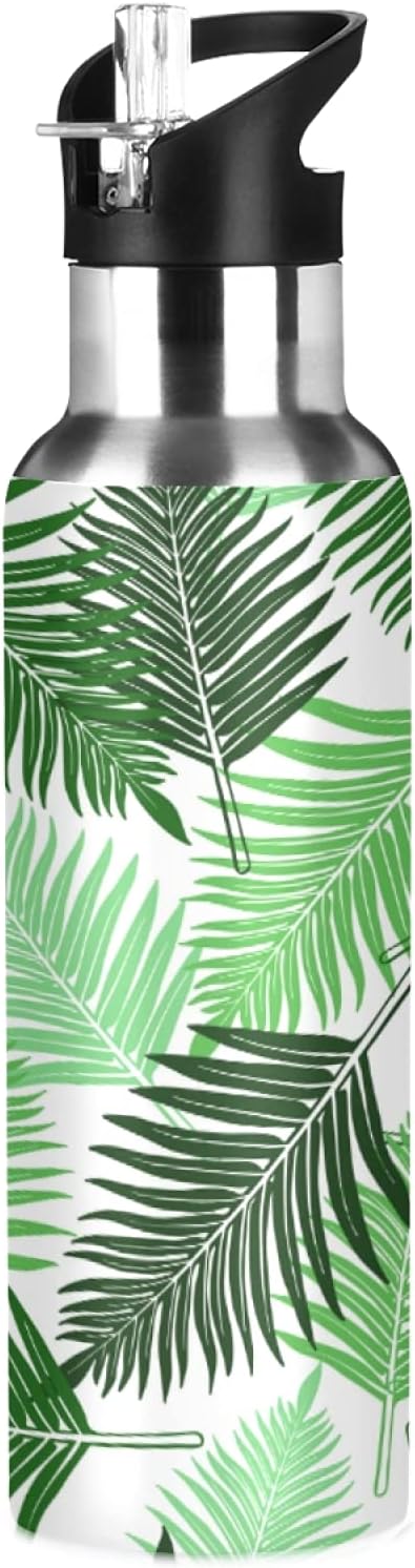 Qilmy Black and White Leopard Water Bottle Vacuum Insulated Stainless Steel Water Bottles with Straw Lid Leakproof Wide Mouth Water Flask for Fitness Outdoor Sports, 20 oz