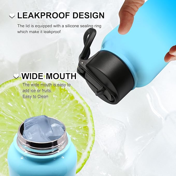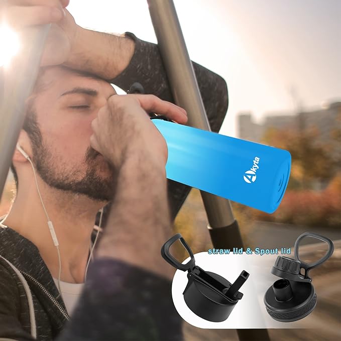 - 4. Water Bottle with Straw / Spout Lids: Akyta Water Bottles, comes with 2 lids,to serve all your needs, Straw lid, and spout lid, Leak-Proof, Splash resistant, the insulated bottle also comes with 2pcs straws and 1pc brush for cleaning straw