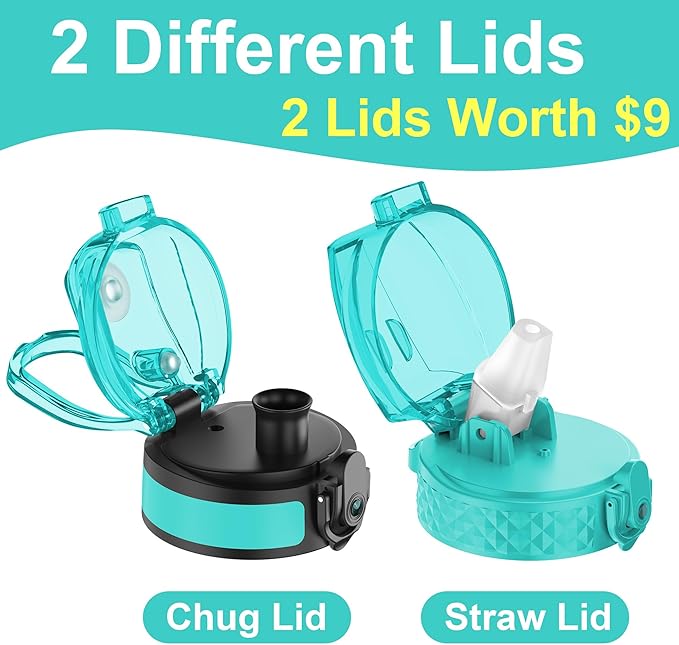 OLDLEY Kids Water Bottle for School with Straw Chug Lid, 15 oz Unbreakable Leak-Proof BPA-Free Motivational Water Bottles with Time Marker for Travel Sports Gym, 2 Lids, Mint Purple