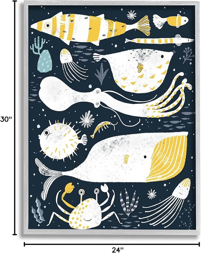 Stupell Industries Aquatic Life Ocean Collage Crab Whale Octopus, Designed by Junco. Studio Gray Framed Wall Art, 24 x 30, Blue