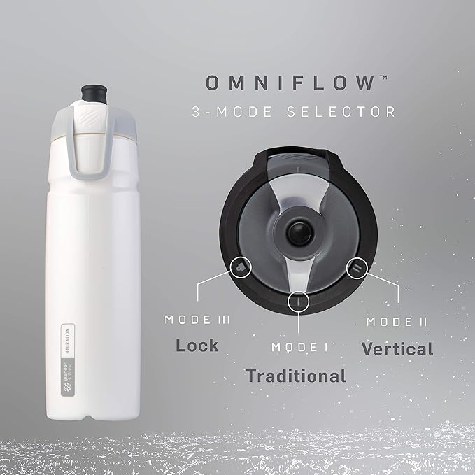 - OmniFlow 3-mode selector allows nozzle to switch smoothly between traditional squeeze mode, vertical straw drinking, and locked cap