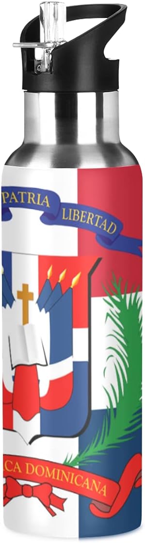 Dominican Republic Flag Sports Water Bottle, Double Wall Vacuum Insulated Stainless Steel Water Bottle with Straw Keeps Hot and Cold, Bike Running Sports Travel Gym 20oz