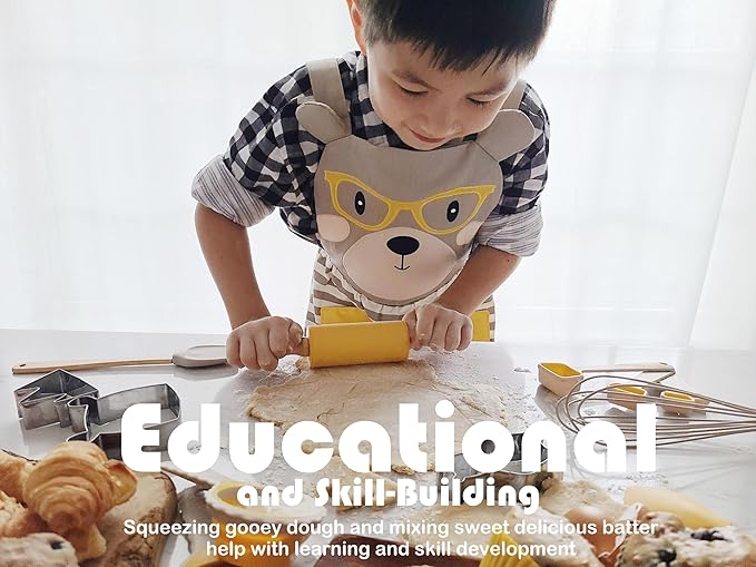 - 🎂 Kids Cooking Sets That Teach Valuable Skills: Help your little one develop dexterity, learn crucial math skills and improve sensory learning, all while enjoying quality bonding time. Bake ooey gooey cookies together, create fun-shaped PBJ sandwiches, decorate tasty cupcakes and more. The creative possibilities are only limited by what you and your kiddo can dream up!