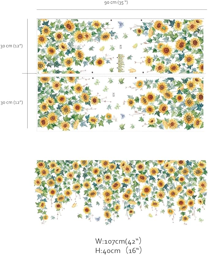 - The perfect combination of sunflower and flower vines, no need to paint your walls, simple and beautiful art decoration. The overall size is 42*16 inch (107*40 cm).