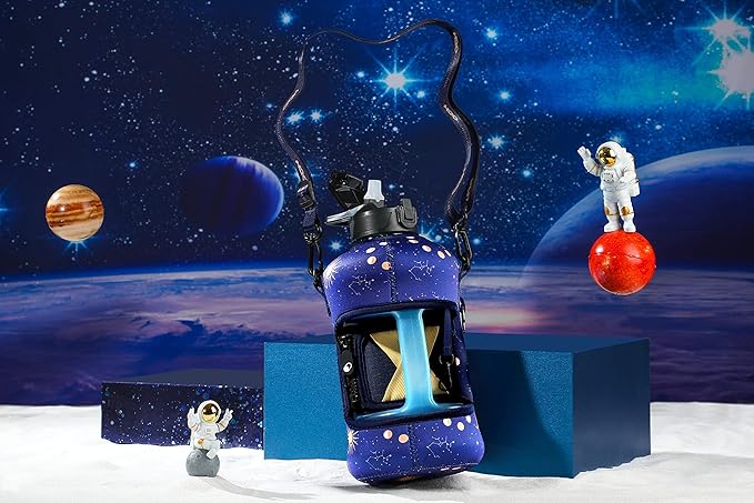 - UNIQUE STORAGE SLEEVE: Using the space under the large jug handle to store your stuff, the patent-pending removable thermal sleeve has a unique design that holds your cards and cell phone, and is finished with an in-built key chain and removable shoulder strap for convenient hands free carrying! It’s the only encased water jug that holds your things while you exercise.