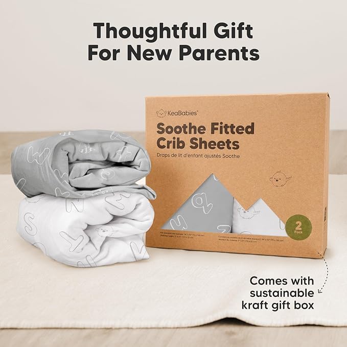 - 2-Pack Fitted Crib Sheets - Each KeaBabies Soothe Baby Crib Sheets set comes with two organic crib sheets for boys and girls that can perfectly fit the standard nursery crib mattresses sized at 52” x 28” and height of 3” to 8”.