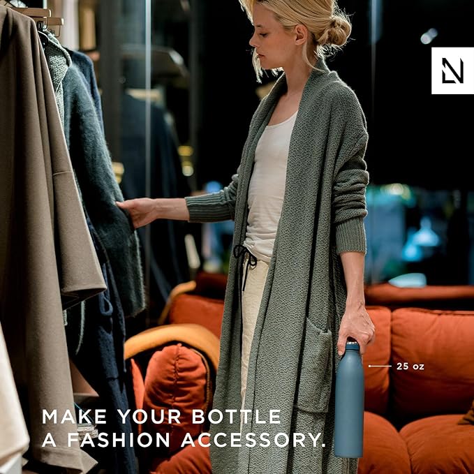 - THERMAL BOTTLE WITH VACUUM INSULATION 12H HOT/24H COLD: The water bottle has a double-wall vacuum insulation and keeps drinks up to 12h hot and 24h cold. Perfect for cold and hot drinks on the go like coffee, cold brew or tea.