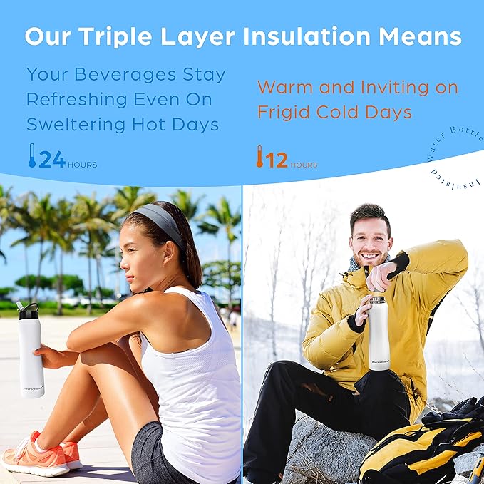 Insulated Stainless Steel Metal Water Bottle with Straw Lid - Vacuum Insulated Water Bottles, Keeps Hot and Cold - Sports Canteen Bottle
