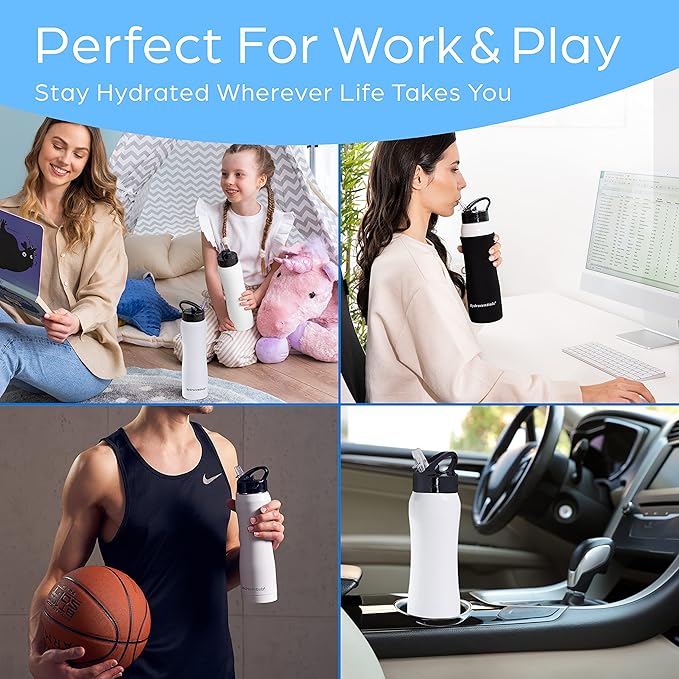 - COLD LIQUIDS ONLY When Using the flip cap with straws! This is a wide mouth double wall insulated water bottle is made of 18/8 food grade stainless steel water bottle, which is only recommended for use with cold beverages due to the flip spout and straw drinking mechanism. You can use for hot liquids with the additional extra new cap made just for our waterbottle.