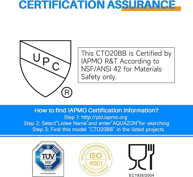 - Carefully Selected Superior Materials: Our filters are produced under the ISO9001 standard and inspected under strict quality control. Each filter is produced through 34 production processes, 400PSI pressure test, 10,000 water hammer tests, and 6 independent tests.