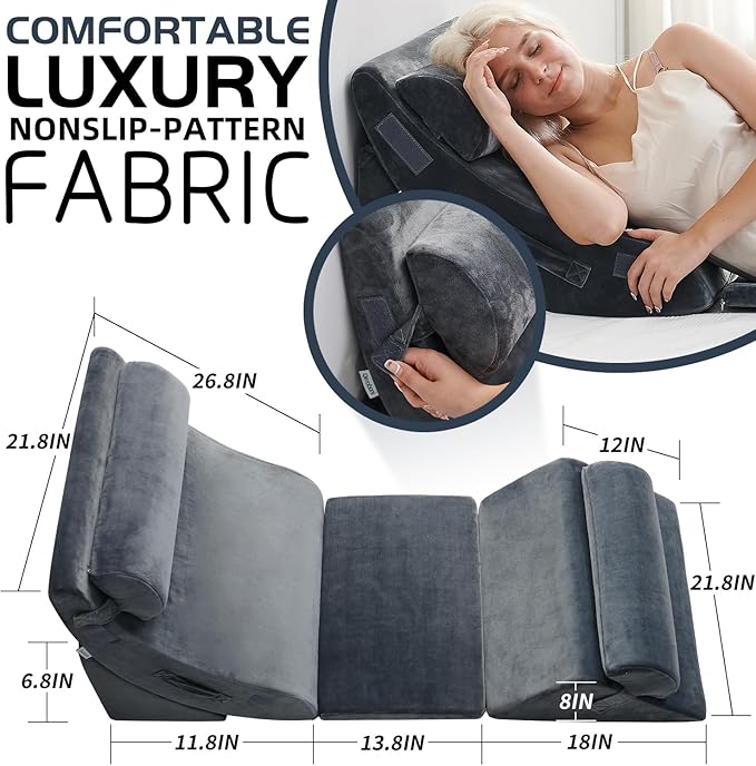 - THE NEWLY UPGRADED 6-PIECE WEDGE SYSTEM: The most advanced & developed wedge pillow set with a floor cushion and leg elevation pillows. Perfect for providing endless comfort for those who enjoy reading, watching, or relaxing in different places.