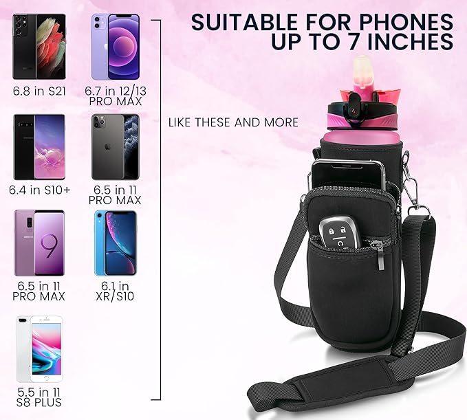 - πππππ ππππππ ππππππ ππππ πππππ: The bottles come with a 6mm neoprene sleeve and a padded shoulder strap that helps keep the bottle on the go and provides an extra layer of protection. The water Bottle is not insulated but the sleeve will keep the water cold for up to 4 Hours. It will also avoid condesation and has 2 zipper pockets to store your keys, money and or phone.
