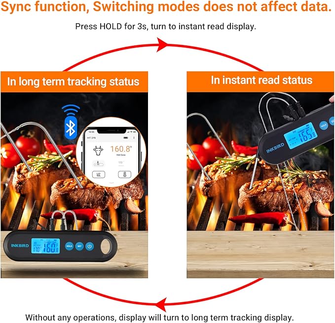 - 328FT bluetooth bbq meat thermometer: except basic probe, this digital grill meat thermometer has extra dual probes. multi-use for grilling,cooking; designed with a 328FT bluetooth remote control by inkbird app through your IOS and Android smartphone.