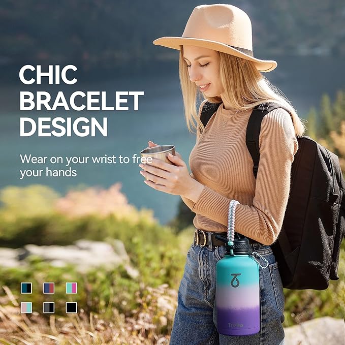 Trebo Water Bottle 64oz with Paracord Handle, Half Gallon Food-grade Double Wall Vacuum Stainless Steel Insulated Jug with Straw Spout Handle Lids, Leakproof Keep Cold & Hot Ombre:Hydrangea