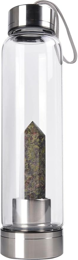 - INGREDINENTS - Crystal glass water bottle energy bottle is made with stainless steel and high borosilicate glass, suitable for hot or cold drinks, easy to clean. Our crystal glass water bottle is crafted from sturdy, non toxic, lead free. Natural crystal is rich in minerals. After running, exercise, yoga, dancing and meditation, it can provide trace minerals for the human body. In addition, this unique crystal bottle is an excellent choice even as a collection and decoration.