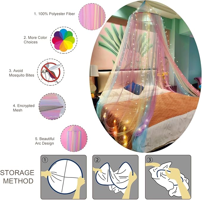 - Color : Rainbow Bed Canopy With Light